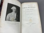 Delahante Adrien Une famille de finance au XVIIIème siècle. Mémoires, correspondance et papiers de famille réunis et mis en ordre. Paris, Hetzel, 1880. 2 volumes in-8°, reliure d'époque en demi-chagrin bordeaux, dos à nerfs avec auteur, titre et tomaison dorés. Frottements d'usage. Exemplaire correct, quelques rousseurs sur les hors-textes. Ouvrage tiré à 200 exemplaires, sur celui-ci, n° 42, il est indiqué à la plume sous le justificatif de tirage « Mr a.Bartholdy » avec un y et un a minuscule. Ouvrage peu courant.