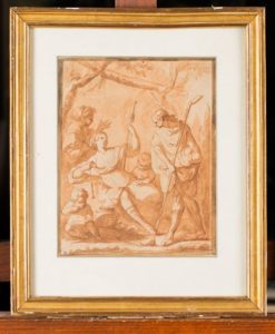 Ecole française du XVIIIe siècle Les Trois Parques Plume, encre brune, lavis de bistre et lavis de sanguine sur papier 26 x 19,8 cm