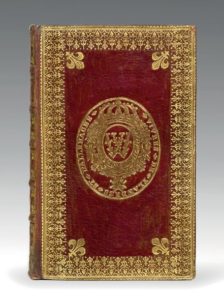et gardes de papier doré et vert d'eau à motifs de rinceaux fleuris et d'entrelacs, tranches dorées (Reliure de l'époque).