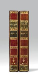 LE CLERC. — La Vie d'Armand Jean Cardinal Duc de Richelieu, principal ministre d'État, sous Louis XIII. — Amsterdam, Aux dépens de la Compagnie, 1714. — 2 volumes — In-12, maroquin rouge, double filet doré, dos lisse orné avec trois...