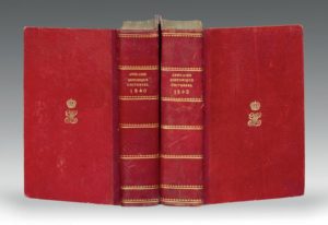 LESUR, ROSENWALD et DESPREZ. — Annuaire historique et universel ou Histoire politique pour 1840 [et pour 1842]. — Paris, Thoisnier Desplaces, 1841-1843. — Ensemble 2 volumes — In-8, demi-maroquin rouge, plats de papier rouge, chiffre doré au...