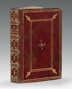 — In-8, maroquin rouge, décor à la Du Seuil, double lambda (λλ) entouré de quatre fermesses frappés or au centre, dos orné, titré MR DE LOMENIE, tranches dorées (Reliure de l'époque).