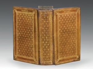 Riche reliure de prix à décor fleurdelisé, portant en haut des plats le nom de son possesseur : Michael Groselier.