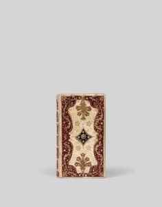 ALMANACH. La Muse triomphante, ou choix agréable de vers les plus ingénieux faits par des Dames célèbres. A Paris, chez Desnos, s. d. (1786). In-24, maroq. blanc, compartiments de maroq. de plusieurs couleurs, rouge, citron et bleu, sertis de fil. dorés, couverts à profusion de dent., petits fers, fleurettes pointillés sur toute la surface des plats, dos orné or et mosaïqué, doubl. et gardes de papier violet avec ramages dorés, tr. dor. (Rel. anc.). Délicieux almanach, recouvert d’une riche reliure mosaïqué, de toute fraîcheur. Le sous-titre « Calendrier de Paris », sous lequel Grand-Carteret (611) le décrit, est dans cette édition donné en tête du texte et en haut des pages. Il est orné d’un frontispice (Muse couronnant le buste de Piron), un titre gravé et 7 estampes hors texte gravées, des plus gracieuses. C’est un recueil de chansons dont les estampes se rapportent au texte.