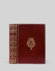 BERTHOUD (Ferdinand). Traité des Horloges marines, contenant la théorie, la construction, la maind’oeuvre de ces machines, et la manière de les éprouver, pour parvenir, par leur moyen, à la rectification des Cartes Marines, et à la détermination des longitudes en Mer. A Paris, chez Musier fils, 1773. Fort in-4, maroq. rouge, dos à 5 nerfs orné, 3 fil. sur les plats et armes au centre, petite dent. intér., tr. dor. (Rel. de l’époque). Très bel et rare ouvrage, orné de 27 planches gravées, dépliantes. Exemplaire en condition exceptionnelle, sur grand papier, AUX ARMES DU DUC D’ORLEANS (Philippe Egalité), né à Saint-Cloud en 1747, guillotiné en 1793. La dédicace à Louis XV est accompagnée d’une très jolie vignette d’en-tête, gravée par Choffard, d’après Cochin, avec portrait en médaillon du roi, ancre marine, instruments de mathématique, bateaux, etc.