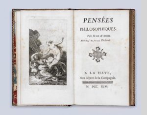 DIDEROT (Denis). Pensées Philosophiques. A la Haye, aux dépens de la Compagnie, 1746. In-12, …