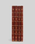 HOUEL (Jean Pierre Laurent). Voyage pittoresque des isles de Sicile, de Malte et de Lipari, Où l’on traite des Antiquités qui s’y trouvent encore ; des principaux Phénomènes que la Nature y offre ; du Costume des Habitans, et de quelques Usages. Paris, Impr. de Monsieur, [Pierre-François Didot], 1782-87. 4 vol. in-folio (516x333), I. 1782. VIII-138-72 pl. / II. 1784. (2f.)-148-72 pl. / III. 1785. (2f.)-126-60 pl. / IV. 1787. (2f.)-124-59 pl. maroquin rouge à long grain, encadrement et jeux de filets dorés sur les plats, dos à 6 nerfs joliment ornés de filets et fleurons, grecque intérieure en encadrement, gardes de tabis, tranches dorées (Reliure de l’époque). EDITION ORIGINALE de ce très beau livre de voyage, publié par l’auteur après son séjour dans les îles du sud de l’Italie. Elle renferme 263 planches hors texte dessinées et gravées par lui-même sur cuivre à la manière du lavis, numérotées I à CCLXIIII en raison d’une planche double (marquée 245-246), carte de la Sicile Jean Houel, peintre graveur français (1735-1813), s’enthousiasma pour l’Italie à la suite d’un voyage qu’il fit en compagnie du marquis d’Havincourt. Il fut entre autres l’élève du peintre Jean-Baptiste Descamps, lequel lui fit connaître la peinture du Nord, de l’architecte Thibault le Vieux ou encore du graveur parisien Le Bas. Il fréquenta le salon de Madame Geoffrin où il côtoya notamment Diderot, Rousseau, Boucher, Vien, etc. En 1768, après avoir obtenu, grâce à la protection du duc de Choiseul et de Charles-Nicolas Cochin fils, un brevet de pensionnaire pour l’Académie royale de France à Rome, Houel quitta Paris pour s’installer dans la Ville éternelle et visiter l’Italie jusqu’en 1772. Un second voyage le mena ensuite de 1776 à 1779 en Sicile, à Malte et dans les îles Eoliennes. Les planches représentent les paysages, monuments, antiquités, avec presque toujours des personnages qui rendent les scènes plus animées. Plusieurs d’entre elles contiennent, en plus de l’illustration, un plan ou une coupe architecturale donnant un côté scientifique à l’ouvrage. 2 des planches sont des cartes de la Sicile. Les planches sont tirées en bistre, très souvent sur un superbe vergé azuré. (Infimes piqûres et petites auréoles, ou manques angulaires). Sujets traités : - Plans : amphithéâtre, bain, écurie, maison, puits, réservoir, temple, théâtre à Agrigente, Catane, Centorbi, Messine, Motyé, Ségeste, Sélinonte, Syracuse, Taormine, Tindare. - Vues : à Cuming, Goze, Lipari, Malte, en Sicile : Catane, Messine, Ségeste, Sélinonte, Sperlinga, Syracuse, Taormine, Tindare ; amphithéâtre, aqueduc, bains, bibliothèque, cathédrale, église, forteresse, moulin, palais, pont, pressoir, prison, puits, réservoir, temple, théâtre, tombeau ; intérieurs (cathédrale). - Scènes : mythologie ; cérémonies religieuses (fête : Bara, sainte Agathe, Saint-Esprit, saint Philippe, sainte Rosalie) ; cérémonies profanes (fête de la moisson) ; moeurs (bain, musique, repas) ; travaux (agriculture, artisanat, élevage, manne, meunerie, monte-charge, pêche, salaison d’anchois, sel, soufre) ; phénomènes naturels (tremblement de terre). - Planches : archéologie, mythologie ; costumes (albanais, maltais) ; sujets (antiquités, bateau, cavalier, Cérès, cordelier, être anthropomorphe, Hippolyte, Junon, Minerve, monnaie, Penthésilée, Phèdre, pressoir, puits, religieuse, sarcophage, voyageur). - Portraits : Blaise Motta (alias Mirrino), Zénobie. SPLENDIDE EXEMPLAIRE EN PLEINE RELIURE DE L’EPOQUE. (Condition rarissime). Blackmer, 834 / Brunet, III-350 / Cohen, 500.
