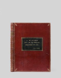 LA BORDE (de). Annette et Lubin. Pastorale mise en musique par Monsieur de L. B...( deLa Borde). Avec les parties séparées. Les paroles sont de M. Marmontel. Gravée par Melle Vendome, chez Mr Moria. A Paris, chez M. Moria, Md de Musiques près la Comédie française, s. d.(vers 1780). In-4, maroq. rouge, dos à 6 nerfs orné, encadr. d’un double fil. avec fleurons d’angles, pièce de maroq. vert encadrée d’une dentelle, au centre du Ier plat avec la mention dorée « A Melle Clairon / don de son dévoué / serviteur et ami. de La Borde », dent. intér., tr. dor. (Rel. de l’époque). Volume de musique entièrement gravé, comprenant un titre (avec catalogue des oeuvres appartenant au Sr Moria qui se vendent chez lui...au verso) et 113 pp. de musique notée pour Flutes, Violons, Cors, Alto, Trio, Basse, Ariettes, accompagnant, au théâtre, les scènes de la pièce « Annette et Lubin », dont les paroles sont également gravées. Cette pièce, qui eût son heure de gloire de célébrité (citée dans le Larousse) est due au compositeur et musicographe français B. de La Borde, né à Paris en 1734, guillotiné en 1794. PRECIEUX EXEMPLAIRE DE DEDICACE A MELLE CLAIRON, LA CELEBRE TRAGEDIENNE (1723-1803), dans un état de conservation remarquable, auquel on a ajouté une superbe lettre autographe de la grande actrice (une page 1/2 in-4, signée avec cachet à son chiffre), adressée à Marmontel, dans laquelle elle lui dit toute son affection mais se plaint de son silence, qui la peine « Avez-vous pu ignoré tous les chagrins que vous m’avez causés (involontairement mais que je vois enfin) que ces mêmes chagrins m’ont retenue six semaines dans mon lit à toute extrémité ? ». Elle ne s’est plainte que devant M. de Filleul qui l’a rapporté à Marmontel. « Je me loue aujourd’hui de les lui avoir faite, puisqu’elle vous les a rendues et que par le soin que vous prenés de vous justifier il m’est encore permis de compter sur un ami qui m’a été, m’est, et me sera cher, jusqu’au dernier moment de ma vie... ». (Portrait gravé, colorié, ajouté).