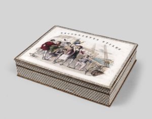 BOITE ROMANTIQUE. Jeu de Loto. Boîte à 4 compartiments avec grand sujet lithogr. (Christophe …