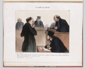 DAUMIER (H.) - Gavarni et Vernier (Ch.). Album in-4, rel. Bradel demi-toile rouge à coins (Champs). Recueil constitué de 27 lithographies originales sur blanc, en coloris gommés de l’époque et de toute fraîcheur. Daumier. Professeurs et Moutards (Pl.3,13,28,31). - Les Gens de Justice (Pl. 17). - Gavarni. Carnaval (Pl. 1 et 4). - Ed. de Beaumond. Les Jolies Femmes de Paris (Pl. 1, 5, 6, 9, 11). - Vernier. Les Beaux Jours de la Vie (Pl. 84 et 86); Au Bal de l’Opéra (Pl.9, 21, 24).