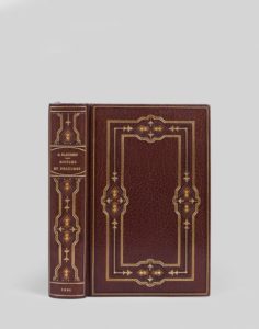 FLAUBERT (Gustave). Bouvard et Pécuchet. Paris, Alphonse Lemerre,1881. Plein maroq. lavallière, dos et plats ornés de fers dorés et mosaïq., fil. dor. sur les coupes, non rogné., couv. cons. (Rel. de l’époque). EDITION ORIGINALE de cette oeuvre importante de Flaubert. - L’UN DES 55 EXEMPLAIRES SUR PAPIER DE HOLLANDE, seul grand papier après 10 ex. sur chine, dans une belle reliure pleine contemporaine qui, bien que non signée, à été exécutée par Carayon pour le baron Regnault, bibliophile Versaillais. On a joint une intéressante L. A. S. (une page 1/2 in-8) de Flaubert, donnant de curieux renseignements sur sa façon de s’habiller. Il désire de suite un beau foulard, une robe de chambre en bain blanc avec les galons pareils que ses robes de chambre ordinaires, les manches tombant jusqu’aux genoux, un pantalon de chambre d’été à coulisse très large... Talvart, VI, p. 9 ; Dumesnil, Bibliographie de Gustave Flaubert, pp. 333-335.