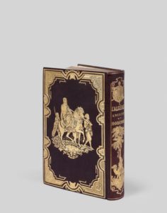 GALIBERT (Léon). L’Algérie ancienne et moderne, depuis les premiers établissements des Carthaginois jusqu’à la prise de la smalah d’Abd-el-Kader. Vignettes par Raffet et Rouargue frères. Paris, Furne et Cie, 1844. Grand in-8, reliure de l’époque en chagrin chaudron, large encadrement doré sur les plats dont les milieux sont illustrés d’un grand fer doré représentant Abd-el-Kader à cheval accompagné de deux fantassins français le fusil à l’épaule, dos sans nerfs orné d’un guerrier arabe sur un dromadaire devant un grand palmier, dentelle intérieure, doublure et gardes de moire gaufrée blanche, tranches dorées (Rel. de l’éditeur). PREMIER TIRAGE. Exemplaire avec le titre à la date de 1844 (cf. Carteret, III, p. 254). 24 planches hors texte sous serpentes gravées sur acier par Rouargue frères, entêtes, culs-de-lampe et 12 planches hors texte de costumes militaires coloriés gravés sur bois d’après Raffet et une carte dépliante coloriée de l’Algérie. Superbe exemplaire, à l’état de neuf, en ravissante reliure décorée de fers spéciaux signés de Haraus. De la bibliothèque Roudinesco.