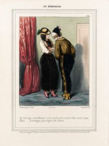 GAVARNI. Les Débardeurs. P., Aubert, s. d. (1840-42). In-4, demi-chagr. rouge, plats papier moiré avec encadr. de fil. or, tr. j. (Rel. de l’époque). SUITE COMPLETE de 66 lithographies originales (Armelhaut et Bocher, 486-542) en superbes épreuves dans le coloris gommé du temps. L’une des meilleures suites de Gavarni, très rare en aussi belle condition. (Cat. Aubert relié à la fin).
