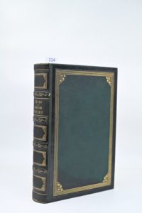 HUGO (Victor). Notre-Dame de Paris. Paris, Perrotin, 1844. Grand in-8, reliure de l’époque en chagrin vert, plats décorés d’un encadrement de 4 filets dorés et à froid avec fleurons à l’intérieur des angles, dos orné, encadrement intérieur orné de filets dorés, doublures et gardes de papier gaufré blanc, tranches dorées (Blaise). PREMIER TIRAGE, AVEC LE FILET ANGLAIS ET LES NOMS DES IMPRIMEURS EN TOUT PETITS CARACTERES 55 planches hors texte, dont un titre gravé, soit 21 gravées sur acier et 34 sur bois d’après les dessins d’Edouard de Beaumont, Boulanger, Daubigny, Tony Johannot, Lemud , Meissonier, Roqueplan, Rudder et Steinheil. Nombreuses gravures sur bois dans le texte. Lettre autographe de Victor Hugo ajoutée, adressée à l’éditeur Perrotin (1844). 1 p. in-8 avec adresse. Cette lettre marque la rencontre de Victor Hugo avec l’éditeur de l’édition illustrée de Notre-Dame de Paris. Le poète se rappelle avoir rencontré Perrotin il y a une dizaine d’années chez Tony Johannot et se réjouit des nouvelles relations qui vont s’établir entre eux. La plus belle édition illustrée de ce célèbre roman. « Remarquable publication, rare en belle condition, qui peut être recherchée comme le prototype du grand texte illustré par les artistes de son temps » (Carteret, III, p. 304). Exceptionnel exemplaire, avec très peu de rousseurs et de la plus parfaite fraîcheur, en pleine reliure de l’époque, signée.