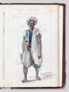 ISABEY (Louis-Gabriel-Eugène) fils et élève de Jean-Baptiste, le célèbre miniaturiste. CARNET DE CROQUIS. ALGER 1830. Carnet de 80 feuillets (de format 125 x 185 mm.) portant plus de 240 croquis, cartonnage d’origine de l’époque. Eugène Isabey, peintre et lithographe de marines des plus réputés, nommé en 1830 dessinateur de l’expédition d’Alger, il fut assez vite de retour en France puisqu’il exposa au salon de 1831, ce carnet parait être le seul et intéressant résultat de ce voyage. « Vers 1830... le dessin est plus serré, les harmonies ont plus d’éclat, comme si elles anticipaient sur les tons presque purs, éclatants, dignes d’un Delacroix au Maroc, que sont ceux de son carnet d’Alger et des environs. Enrichi de plus de nombreux croquis, scènes à plusieurs personnages, types arabes, paysages, fort en bord de mer, bêtes de somme, cavaliers s’y côtoient. Des sépias, des aquarelles, vingt pages de notes de l’artiste nous renseignent sur ses impressions. Certaines consignent des détails et la couleur des costumes, d’autres sont des notations d’attitudes. Ces indications de lieu vont de La Porte de Babel Oued de La Fontaine des Platanes au delà de Mustapha à un Arabe en prière au chemin du camp de Birkadem ». (P. Miquel: Eugène Isabey, 1980, vol.I, p. 231, qui cite les textes de très nombreuses notes de ce carnet).