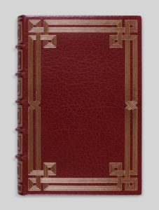 MAUPASSANT (Guy de). Le Rosier de Madame Husson. P., Librairie Moderne, 1888. In-12, maroq. bordeaux, plats ornés d’un double encadr. de rangs de fil. dorés brisés et entrelacés dans les angles et sur les côtés, dos à compart. de fil., doublé de maroq. rouge plus clair entouré de 5 fil. dor., gardes de soie moirée rouge, doubles gardes, tr. dor. sur témoins, couv. ill. et dos cons., étui (Maylander). EDITION ORIGINALE POUR 13 NOUVELLES (seul Le Rosier de Madame Husson avait paru la même année en édition illustrée). UN DES 12 EXEMPLAIRES SUR PAPIER DE HOLLANDE, numérotés.