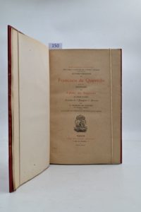 QUEVEDO (Francisco de). Histoire de Pablo de Ségovie traduite de l’espagnol et annotée par de Lavigne. Illustrée de nombreux dessin de Daniel Vierge. P., Bonhoure, 1882. In-8, demi-veau rouge, coins, dos orné, n. r., couv. et dos cons. (Carayon). PREMIER TIRAGE des nombreuses illustrations de Daniel Vierge. Un des 30 exemplaires numérotés sur papier de chine.