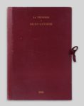 REDON (Odilon). La Tentation de Saint Antoine, troisième série. Texte de Gustave Flaubert. P., Clot et Blanchard, 1896. In-folio, sous portfolio de l’éditeur bordeaux avec le titre et la date en lettres dorées. PREMIER TIRAGE, tiré seulement à 50 exemplaires. - SUITE COMPLETE DE 23 LITHOGRAPHIES ORIGINALES (Mellerio, 134 à 157), tirées sur chine fixé sur vélin fort et un frontispice, imprimé en bistre sur japon avec la signature manuscrite de l’artiste au crayon brun. SUITE EXCEPTIONNELLE à laquelle A. Mellerio a ajouté 5 épreuves d’essai, du rare Ier état avant la lettre des planches suivantes : M., 136 ; M., 141, signée au crayon ; M., 145, signée ; M., 148, signée ; M., 154. Chacune de ces planches est accompagnée d’une note descriptive manuscrite au crayon du catalographe. ENSEMBLE D’UNE QUALITE DE NOIRS REMARQUABLE avec les rousseurs, principalement marginales, qui accompagne cette qualité. Dim. des feuilles : 570 x 402 m m. (et plus petites pour les états). Provenance : André Mellerio.
