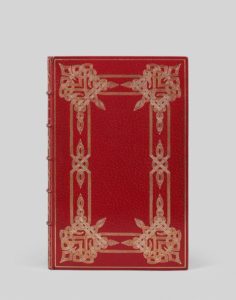 RICHEPIN (Jean). Les débuts de César Borgia. P., Les Bibliophiles contemporains, 1890. Gr. in-8, maroq. rouge, dos à 5 nerfs orné, jeux de fil. sur les plats, doublé de maroq. rouge, important décor de sujets fleurs et feuillages, corps dorés et mosaïques, gardes de moire violette, doubles gardes, tr. dor. sur témoins, couv. ill. et dos cons., étui à chemise (P. Ruban, 1897). TIRAGE A 186 EXEMPLAIRES, numérotés. - Edition publiée par les soins d’Octave Uzanne, des plus typiques de la « Belle Epoque », illustrée par Georges Rochegrosse de compositions gravées à l’eau-forte, imprimées en couleurs. EXEMPLAIRE IMPRIME POUR M. CH. DELAFOSSE, AVEC SUITE A PART EN NOIR, RECOUVERT D’UNE REMARQUABLE RELIURE DOUBLEE ET MOSAIQUEE, SIGNEE D’UN DES PLUS GRAND RELIEUR DE L’EPOQUE, PETRUS RUBAN.