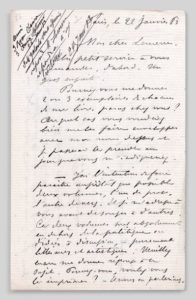 VERLAINE(Paul). Sagesse. Paris, Société Générale de Librairie Catholique,1881. In-8, demi-maroquin rouge, dos orné, coins, tête dor., non rogné, couverture et dos, étui (Pagnant). EDITION ORIGINALE, très rare, de ce recueil dont certaines poésies ont été composées par Verlaine durant sa détention à Mons. L’auteur dépensa près de 600 francs pour cette publication dont il a été tiré 500 exemplaires sur papier vélin. L’ouvrage ne rencontra aucun succès. La conversion en prison dictera à Verlaine les admirables poèmes mystiques de Sagesse, qui inaugure une poésie religieuse dans des formes plus traditionnelles, laissant place, « parallèlement », à des volumes profanes, satiriques ou sensuels, voire gaillards, où le vers parfois cousine avec le mirliton et n’est que trop rarement « la chose envolée » (En français dans le texte, n° 301). Superbe exemplaire, dans une fine reliure contemporaine et de toute fraîcheur, la fragile couverture est ici à l’état de neuf, auquel on a joint une très belle lettre autographe signée de Paul Verlaine, adressée à l’éditeur Alphonse Lemerre (qui publia les premières oeuvres poétiques de Verlaine : Poèmes saturniens - Fêtes galantes - La Bonne Chanson...) elle est datée : « Paris, 17 rue de la Roquette, 22 Janvier 1883 » (2 pp. 1/2 in-8), relatives aux Poètes maudits et à Jadis et Naguère. On sait que Les Poètes maudits fut le premier volume de prose de Verlaine et également le premier ouvrage du poète qu’édita Vanier : «Un petit service à vous demander, d’abord ; un gros ensuite. Pourriez-vous me donner 2 ou 3 exemplaires de chacun de mes livres parus chez vous... J’ai l’intention de faire paraître aussitôt que possible deux volumes, l’un de prose, l’autre de vers... les deux volumes sont absolument en dehors de la politique ou d’idées à discussion, purement littéraires et artistiques... Le temps a dû adoucir dans une toute petite partie de votre entourage actuel d’incompréhensibles rancunes. Aussi bien le gros reproche d’envie que vous m’envoyâtes jadis, et si injuste que vous devez être revenu depuis complètement. Quant à la politique également reprochée (compromis après la Commune Verlaine avait dû, on le sait, s’exiler successivement en Angleterre et en Belgique) sans m’en détacher absolument aujourd’hui, d’abord j’ai changé de tout au tout ma manière d’y voir, puis je vous répète qu’il n’y en a pas une bribe dans les 2 volumes en question, j’ai gardé, je m’en honore, tous mes amis d’autrefois, sauf une exception que vous savez et que je suis encore à comprendre, moi bonhomme et franc. Vous devez comprendre que mon livre dernier, Sagesse, réclamait un éditeur spécial et je ne vous ai pas ennuyé de demandes à ce sujet...». Les autres ouvrages de Verlaine parurent chez d’autres éditeurs, principalement Vanier, cette lettre ne persuada donc pas Lemerre de reprendre contact avec le poète.