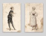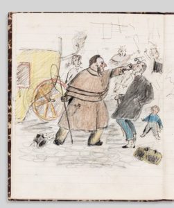 PIERRE BONNARD (1867-1947). CARNET DE DESSINS. Pet. in-4, demi-perc., tr. marbr. (Carnet de l’époque). Carnet composé de 29 ff. de papier réglé, précédés d’une carte de France. Le premier feuillet est vierge, les 5 premières pages donnent la copie à l’encre d’une lettre de Mme de Sévigné, ensuite viennent des dessins ou croquis originaux au crayon, à la plume ou crayons de couleurs, quelques-uns à pleine page (quelques pages sont restées blanches): hommes et chevaux, études de têtes... 6 grandes compositions à pleine page, plume et crayons de couleur, représentent des scènes humoristiques, 5 grands dessins aux crayons de couleur représentent des têtes dont un superbe visage de femme, le plat intérieur verso est également recouvert d’un croquis à la plume. L’un des dessins en couleurs est signé par Bonnard et deux aquarelles également signées sont jointes à ce carnet de jeunesse du grand artiste qui pouvait être alors âgé d’une quinzaine d’années. Certains de ces dessins sont très frais et très spirituels, d’autres (tel le visage de femme) témoignent déjà d’une grande maîtrise et annoncent un grand dessinateur.