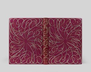 MATISSE (Henri) MALLARME (Stéphane). POESIES. Eaux-fortes originales d’Henri Matisse. Lausanne, Skira, 1932. Grand in-4 (328 x 245 mm), maroq. cyclamen, décor d’une grande rosace couvrant tout les plats et le dos lisse, elle est faite d’un filet or demi-gras qui déroule ses arabesques et se dédouble parfois pour former des pleins, l’espace entre ces fil. est alors mosaïqué en veau vert amande, doubl. et gardes de daim fuchsia bordées de veau clair, tr. dor. sur témoins, couv. et dos cons., chemise, étui (Paul Bonnet). Edition ornée de 29 EAUX-FORTES ORIGINALES DE MATISSE, dont 23 hors-texte et 6 vignettes tirées sur les presses de Lacourière. Tirage à 145 exemplaires (papier vélin à la forme), numérotés et signés par l’artiste. UN DES PLUS BEAUX LIVRES ILLUSTRES PAR MATISSE. « Les eaux-fortes de Matisse pour les Poésies (1932) de Stéphane Mallarmé constituent sans doute un ultime accomplissement dans la tradition luxueuse des livres illustrés. Inspiré par la notion mallarméenne de page blanche comme espace premier, l’artiste y fait preuve d’un sens exceptionnel de l’équilibre et de l’harmonie. Quand Matisse trace ce livre, il veille à ce que la lumière de la page soit co-auteur avec les fines traces des lignes continues de ses eaux-fortes. Il fait contraster la légèreté de la ligne avec le poids du texte imprimé et compare l’effet des balles blanches et noires dans les mains à l’art du jongleur qui fait un ensemble harmonieux aux yeux du spectateur. » (Andel p. 346). Second ouvrage illustré issu des presses du jeune éditeur Albert Skira (après son magnum opus en collaboration avec Pablo Picasso pour illustrer Ovide) mais le «premier projet d’illustration de tout un ouvrage par Matisse» (Bogousslavsky, De Parallèlement à Chanson complète, p. 322). SUPERBE RELIURE DE PAUL BONET, DONT LE DECOR EVOQUE PARFAITEMENT LE GRAPHISME DE MATISSE. L’épure du décor de la reliure est jointe à l’exemplaire. Bonet dans ses carnet à propos de ce décor : « Voici peut-être la meilleure de toutes mes reliures - c’est aussi celle où j’ai utilisé au maximum les possibilités du plus pur de tous les éléments du décor : le filet ». Ref. : Duthuit, 5 ; Rauch, 256. From Manet to Hockney 95 ; Castleman p. 92 ; Garvey 196;