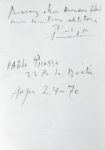 BUFFON. HISTOIRE NATURELLE. Eaux-fortes originales pour des textes de Buffon. Paris, Chez Martin Fabiani, 1942. Grand in-4 (373 x 280 mm), maroquin bleu nuit, plats et dos lisse ornés d’un décor mosaïqué avec têtes de cervidé sur chaque plat de box de différentes couleurs et tons et mouvement de fil. dor., doublure et gardes de daim rouge, tranches dorées sur témoins, couverture et dos conservés, chemise, étui bordé (P. Bonet). 31 EAUX-FORTES ORIGINALES DE PICASSO hors texte. Tirage à 226 exemplaires. UN DES 55 EXEMPLAIRES SUR VELIN DE MONTVAL, n° 91, comportant UNE SUITE A PART SUR CHINE de toutes les eaux-fortes, BIEN COMPLET DE LA « PUCE » Marie-Thérèse Walter, SUR CHINE et aussi sur Vélin filigrané « Ambroise » avant la lettre (cf. repr. au cat.). Lettre autographe de Picasso à Ambroise Vollard ajoutée, demande pour une entrevue à Paris le 23 juin 1941. Superbe reliure mosaïquée de P. Bonet. Creuzevault, V, rel. 173, p. 406 ; Cramer, 37 ; Bloch, 328-358 ; Ba er, 575-606 ; Rauch, 298
