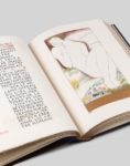 SCHMIED (François-Louis). MARDRUS (Dr Joseph-Charles). LA CREATION. Les Trois premiers livres de la Genèse suivis de la Généalogie adamique. Paris, Schmied, 1928. In-folio, maroquin havane, rectangles de maroq. rouge et havane se prolongeant au dos et sur les plats avec 9 listels de maroq. blanc disposés en biais et grand laque incrusté dans le premier plat avec un astre en limaille d’or, fil intérieur doré, doublure de soie verte, n. r., couverture cons., chemise demi-maroquin, étui (G. Cretté, succr de Marius Michel). Première édition de la traduction de Mardrus, établie par François-Louis Schmied, aux dépens de M. M. Gonin et Cie, libraires-éditeurs à Lausanne. Splendide publication imprimée entièrement en lettres capitales, ainsi qu’il sied à la Parole de Dieu, le texte de la Genèse imprimé sur une mince colonne, symbole du Verbe qui s’élève. L’illustration comprend la couverture et 42 compositions en couleurs, gravées sur bois, dont 12 hors-textes, 12 en-têtes, 10 culs-de-lampe, un bandeau et 7 vignettes, des bouts de lignes imp rimés en bleu ou orange. Tirage à 195 exemplaires, tous sur Arches, numérotés et signés. Exemplaire enrichi d’une planche refusée annotée par l’artiste, la suite de décomposition des couleurs d’une gravure (21 planches sur japon), une suite des bois en noir (43 planches sur Arches) et la maquette de la reliure signée par Schmied. TRES BELLE ET IMPORTANTE RELIURE MOSAIQUEE DE CRETTE, DECOREE D’UN LAQUE DE J. DUNAND