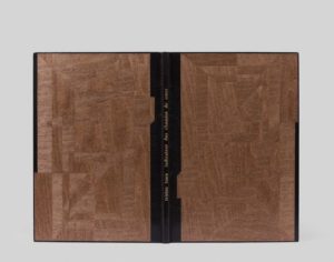 TZARA (Tristan). Indicateur des chemins de coeur. Paris, Jeanne Bucher, 1928. Gr. in-8, dos et bordures de maroq. brun foncé, plats de bois brun constitué de formes géométriques disposées à contre-fil, doubl. de bois brun, tête dorée sur témoins, couverture de papier vergé rose ornée d’une vignette gravée et dos cons., étui bordé (Martin. 1964). Edition ORIGINALE imprimée à 100 exemplaires, le nôtre numéroté sur vélin d’Arches. Ouvrage illustré de trois eaux-fortes hors texte par Louis Marcoussis. BEL EXEMPLAIRE DE CET OUVRAGE RARE.