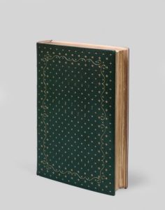 VALERY (Paul). Vers et prose. Orné de trente-six aquarelles de Pierre Laprade. P., N. R. F., 1926. Gr. in-8, maroq. vert, plats et dos lisse couverts de motifs dorés ou mosaïqués en maroq. rose, doubl. et gardes de box rose, tr. dor. sur témoins, couv. et dos cons., chemise à dos de maroq. décoré et étui (Paul Bonnet, 1937). PREMIERE EDITION de cette anthologie, tirée à petit nombre et illustrée de 36 compositions de Pierre Laprade, la plupart en couleurs. EXEMPLAIRE DU PEINTRE, spécialement imprimé à son nom SUR PAPIER WHATMAN, avec double suite à part, sur Hollande et sur Whatman, de toutes les illustrations. Il est enrichi de 5 aquarelles et 19 dessins originaux. TRES BELLE RELIURE DECOREE DE PAUL BONET. De la bibliothèque Morgan A. Gunst avec ex-libris.