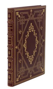 Paris, Les Livres de Louis Jou, 1927. In-4, maroquin brun, plats décorés d'une riche ornementation dorée composée de multiples fers, fleurons et filets, dos orné de même, doublure de box havane, gardes de moire bordeaux, tranches dorées sur témoins, couverture et dos, étui (René Aussourd).Ouvrage ornée de compositions originales sur bois de Louis Jou, dont le portrait de Pierre de Ronsard, les titres et initiales en rouge, et de nombreux culs-de-lampe typographiques.