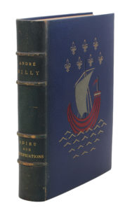 S.l., Société de Saint-Eloy, 1930. In-4, maroquin bleu, plats ornés d'un décor mosaïqué de maroquin gris et rouge représentant un bateau, fleurs de lys et fers dorés et à froid évoquant des vagues, encadrement intérieur de même maroquin orné d'un listel de maroquin bordeaux en encadrement et filets dorés, doublure et gardes de moire rouge, tranches dorées, couverture et dos, étui (G. Cretté succ. de Marius Michel).Édition originale illustrée de 51 eaux-fortes, dont 11 à pleine page, de Brouet, Henry Cheffer, Charles Jouas, Polat, Decaris etc.