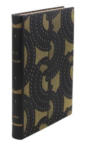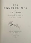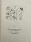 Paris, Petiet, 1930. In-4, maroquin noir, plats ornés d'un riche décor géométrique composé de filets doré format un quadrillage de formes irrégulières et de pastilles au palladium et à froid, dos lisse orné, encadrement intérieur de même maroquin orné, doublure et gardes de moire bordeaux, tranches dorées, couverture et dos, chemise et étui (J. Anthoine Legrain).Édition augmentée de deux poèmes inédits et ornée de 62 gravures au burin dessinées et gravées par Jean-Émile Laboureur.