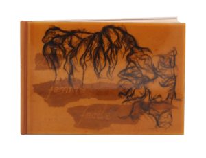 Paris, Jeanne Bucher, 1942. In-12 oblong, bradel demi-veau caramel, les deux plats plastifiés recouvrant des mèches de cheveux, laissent apparaître le titre et le nom des artistes, dos lisse avec titre doré, couverture et dos, étui (Monique Mathieu 1964).Édition originale tirée en fac-similé lithographié du manuscrit calligraphique de l’auteur et orné de 14 compositions originales de Christine Boumeester et d'Henri Goetz.