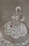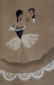 Paris, Kra, s.d. [1927]. In-folio, en feuilles, couverture illustrée, chemise demi-percaline ocre à bandes, rabats et lacets de l'éditeur. Édition originale de ce recueil de 16 sonnets d'Henri de Régnier ornés de 16 illustrations de costumes Art déco en couleurs de Yan Bernard Dyl.