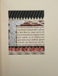 Lyon, Le Cercle Gryphe, 1929. In-4, en feuilles, couverture illustrée. Ouvrage illustré de 73 compositions géométriques en rouge et noir rehaussées au palladium par le dinandier Claudius Linossier, dont ce sera le seul livre illustré. Elles ont été gravées sur bois par Philippe Burnot.