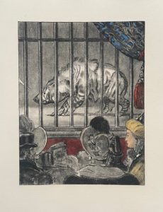 Paris, Maxime Cottet-Dumoulin, 1949. In-4, en feuilles, couverture titrée repliée, chemise et étui en cartonnage simili peau de serpent de l'éditeur. Édition illustrée de 67 eaux-fortes dessinées par Paul Jouve et gravées par Raymond Haasen, dont : 3 compositions à double page rehaussées de couleurs, 10 compositions à pleine page dont 9 rehaussées de couleurs et 54 vignettes rehaussées d'or (7 sujets différents répétés).