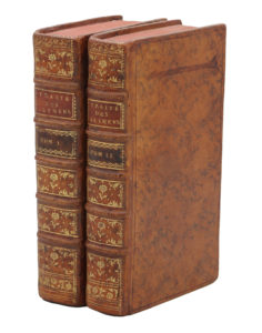 Paris, Durand, 1755. 2 volumes in-12, basane fauve marbrée, dos à nerfs ornés, pièces de titre rouges, pièces de tomaison vertes, filet à froid sur les plats, tranches rouges (Reliure de l’époque).lxxx-552 – titre et 595-(4) pp.