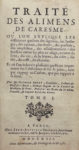 ANDRY DE BOISREGARD (Nicolas) — Traité des alimens de caresme, où l’on explique les differentes qualitez des légumes, des herbages, des racines, des fruits, des poissons, des amphibies, des assaisonnemens : des boissons même les plus en usage, comme de l’eau, du vin, de la bierre, du cidre, du thé, du caffé, du chocolat. et où l’on éclaircit plusieurs questions importantes sur l’abstinence & sur le jeûne, tant par rapport au carême, que par rapport à la santé.
