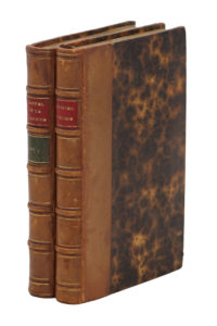 2 parties en un volume petit in-12 (12 x 7,5 cm), demi-basane fauve, dos à nerfs ornés de filets dorés, tête dorée, étui moderne bordé de même (Reliure du XIXe siècle).Première et unique édition, très rare complète des deux parties.