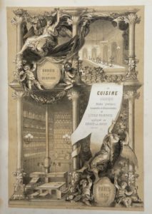 Beau frontispice lithographique et 215 illustrations de présentations de plats sur 38 planches gravées hors texte.