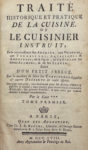 [MENON (Joseph)] — Traité historique et pratique de la cuisine, ou Le Cuisiner instruit... Suivi d’un petit abrégé sur la manière de faire les confitures liquides et autres desserts de toute espèce.