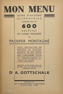 MONTAGNÉ (Prosper) — Mon menu. Guide d’hygiène alimentaire contenant plus de 600 recettes de cuisine ménagère. Précédé d'une étude sur les bases de l'alimentation humaine par le Dr. Gottschalk.