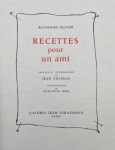 54 recettes écrites et réalisées par Raymond Oliver pour Jean Cocteau.