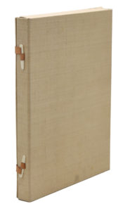 Paris, Léon Pichon pour les Bibliophiles du Faubourg, 1930. Petit in-4, monté en accordéon et cousu à la japonaise, couverture de toile fine portant deux idéogrammes brodés en rouge, chemise repliée et étui-boîte décoré (Canape & Corriez).Charmante édition d'un livre de référence sur le thé, publiée à la manière japonaise et tirée à 110 exemplaires numérotés sur papier impérial Annam à la cuve d'Hanoï ; exemplaire imprimé au nom de M. P. Binet.