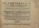Très rare édition de cet ouvrage de gastronomie célèbre et important, composé de trois traités : le Trattato delle piegature, sur la façon de plier le linge de table ; le Trattato dello scalco, consacré aux saisons de l'année et aux menus qu'il convient d'y servir ; et enfin, Il Trinciante, sur la découpe des mets.