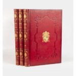 BENOIST (Philippe et Félix). Rome dans sa grandeur. Vues, monuments anciens et modernes. Description, histoire, institutions. Paris, Nantes, Henri Charpentier, 1870. 3 vol. grand in-folio, chagrin rouge, encadrement à froid, armes dorées au centre des plats, dos à nerfs orné, tête dorée (Rel. de l'éditeur, avec étiquette). Édition originale, illustrée de 3 frontispices, d'une carte et 96 planches lithographiées et teintées : le Forum Romain, la Cathédrale Saint Pierre, Panthéon, Colisée, Corso, Place du Peuple, Vatican, château Saint-Ange, Trastevere… Très bel exemplaire aux armes du pape Pie IX. Quelques frottements et éraflures, coins émoussés.