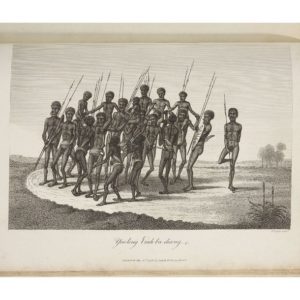 COLLINS (DAVID). An Account of the English colony in New South Wales with Remarks on the Dispositions, Customs, Manners… Londres, T. Cadell Jun. et W. Davies, 1798. In-4, demi-veau bleu nuit, dos lisse orné (Rel. de l'époque). La première description officielle de la colonie anglaise en Australie, La Nouvelle-Galles-du-Sud. Édition originale du premier volume, le second volume paraîtra en 1802. L'illustration contient : une carte en frontispice (petites taches), un plan dépliant, 4 illustrations in-texte, 18 planches montrant des paysages et villes en développement, et de belles scènes aborigènes. Taches et rousseurs, mouillures. Cachet de bibliothèque Petit-Quevilly, et mention manuscrite ancienne : "Offert à la bibliothèque de Quevilly. Laporte".