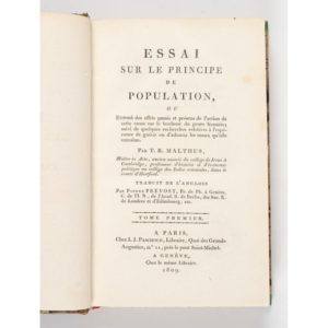 MALTHUS (Thomas). Essai sur le principe de population. Paris, Genève, J. J. Paschoud, 1809. 3 …