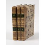 MALTHUS (Thomas). Essai sur le principe de population. Paris, Genève, J. J. Paschoud, 1809. 3 vol. in-8, demi-basane havane, dos lisse orné or et à froid, pièces de titre et de tomaison vertes (Rel. de l'époque). Édition originale française, traduite de l'anglais par Pierre Prévost. L'originale anglaise parut en 1798 : " The population of a community, Malthus suggested, increases geometrically, while food supplies increase only arithmetically. If the natural increase in population occurs the food supply becomes insufficient and the size of the population is checked by 'misery' - that is the poorest sections of the community suffer disease and famine " (Printing and the Mind of Man, 251). Ex-libris L. G. A. Larue. Plaisant exemplaire en reliure de l'époque. Petite mouillure à quelques feuillets du tome II. Légers frottements aux dos.
